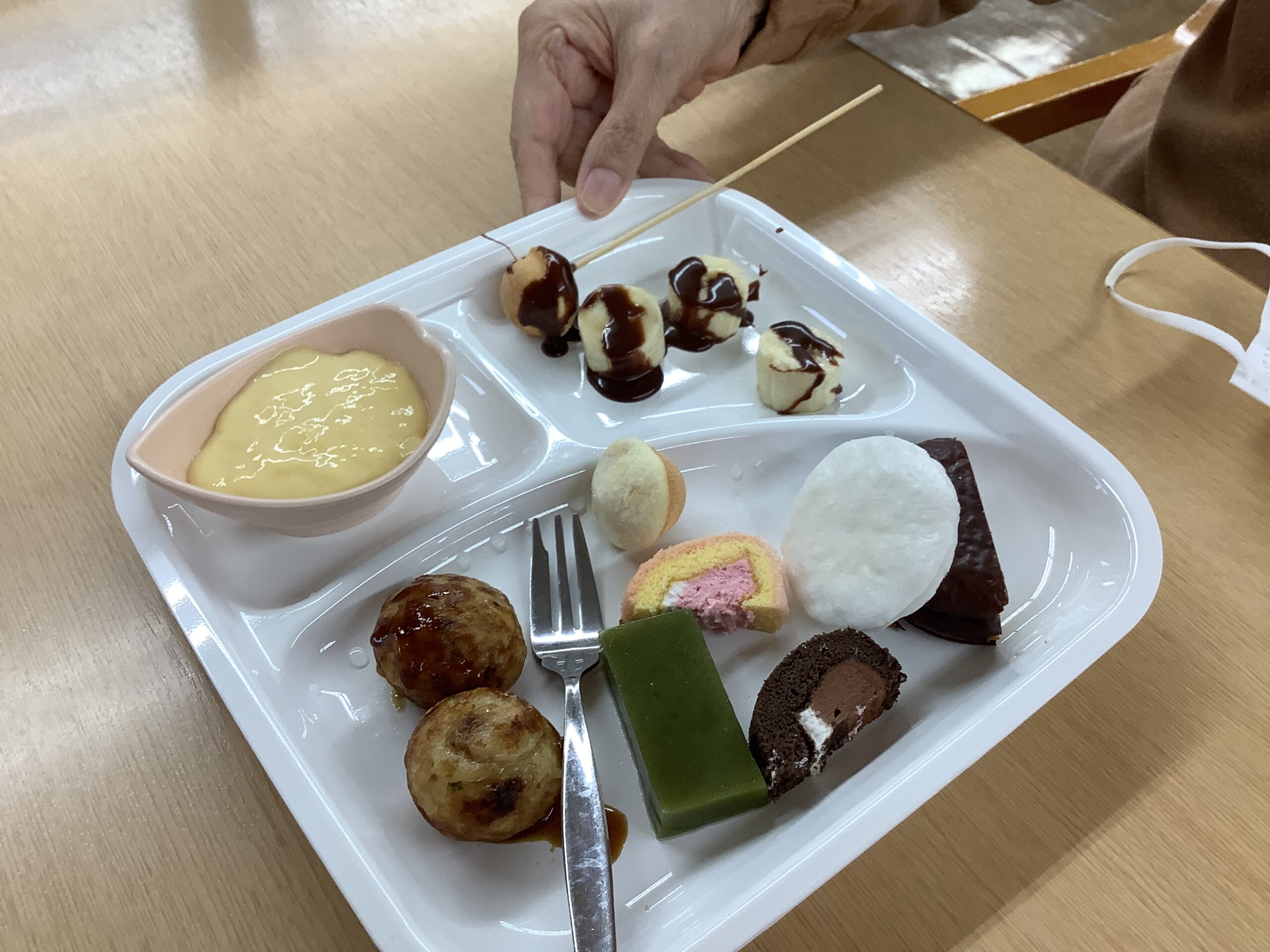 甘いおやつの中にたこ焼きもあったのが好評でした。